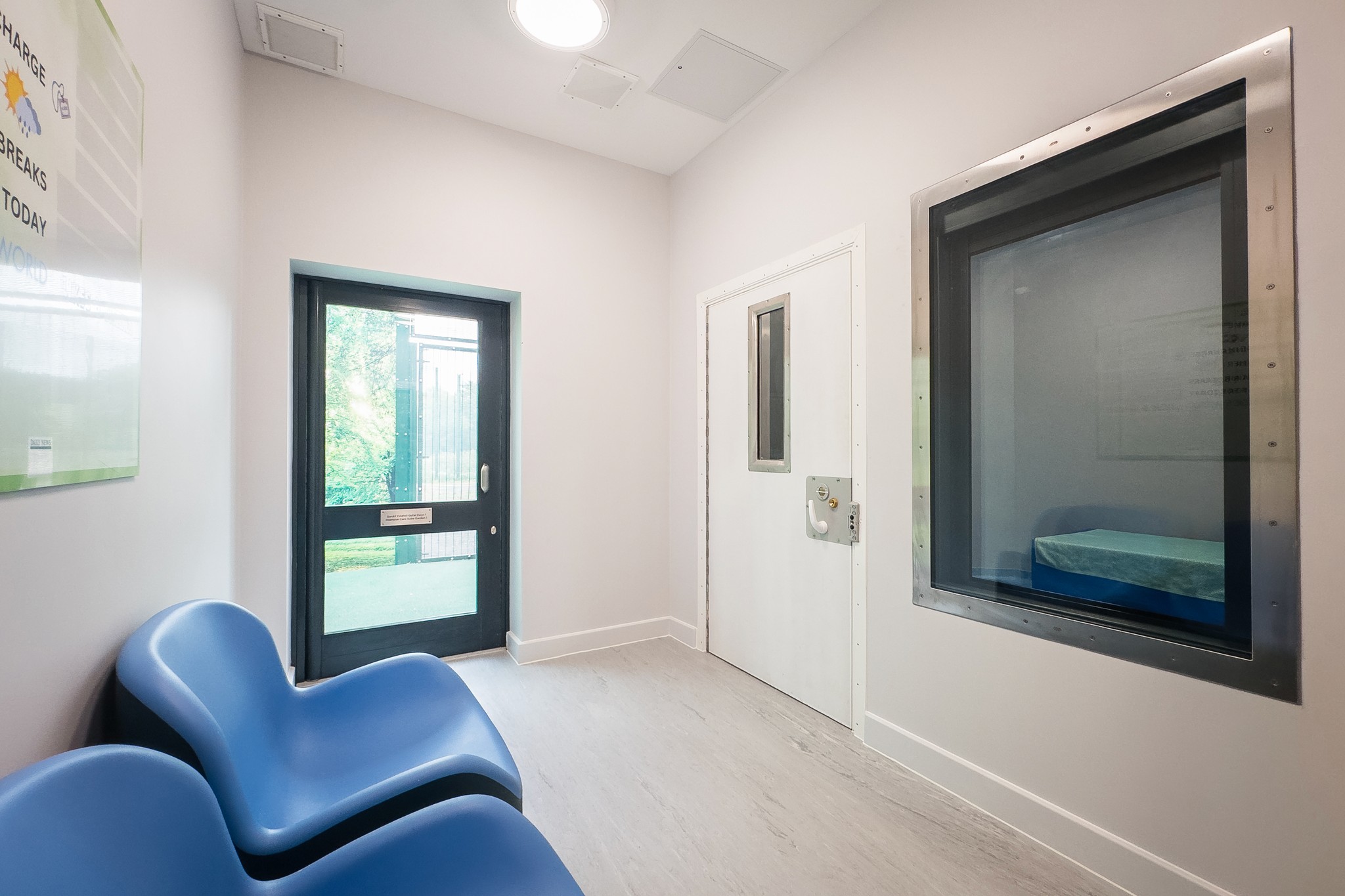 A secure outdoor space was formed to sit directly alongside the seclusion provision, enabling supervised external access as part of a therapeutic pathway. The external area was designed for safe, simple operation by staff, with durable finishes and controlled entry/exit arrangements to maintain security while supporting engagement and wellbeing.